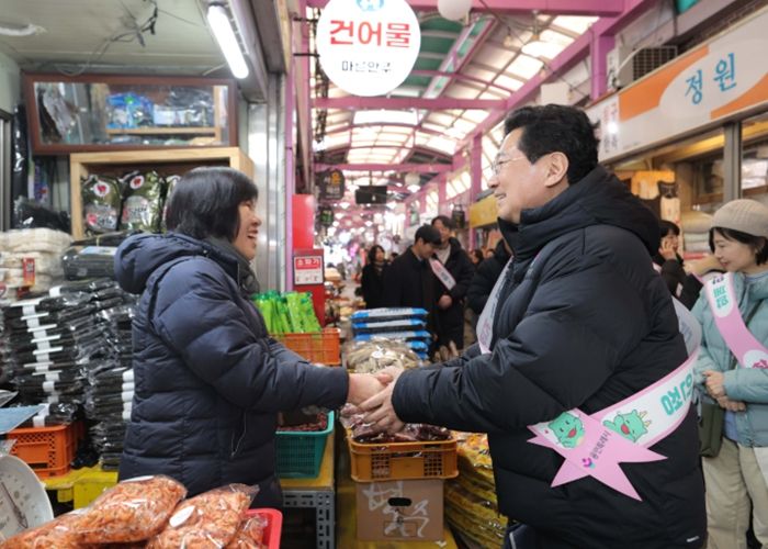 경기호연뉴스 민선기 기자 | 이상일 용인특례시장은 10일 설을 앞두고 용인중앙시장에서 장을 보며 상인과 시민에게 명절 인사를 하고, 수지구 성복동에 있는 장애인 복지시설 ‘해오름의 집’을 위문했다.