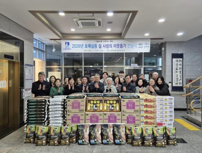 경기호연뉴스 민선기 기자 | 수원시 권선구 호매실동에서 2026년 설 명절을 맞이하여 이웃 돕기 전달식을 진행했다.