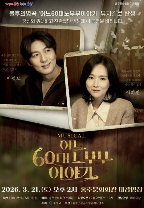 경기호연뉴스 민선기 기자 | 홍성군 홍주문화회관은 내달 21일 오후 2시, 중장년층을 넘어 모든 세대가 공감할 수 있는 따뜻한 가족 이야기를 그려낸 뮤지컬 ‘어느 60대 노부부 이야기’를 무대에 올린다.