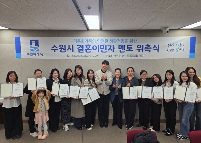 경기호연뉴스 민선기 기자 | 수원특례시가 25일 시청 영상회의실에서 ‘2026년 결혼이민자 멘토 위촉식’을 열고 선배 이민자 멘토 15명을 위촉했다.