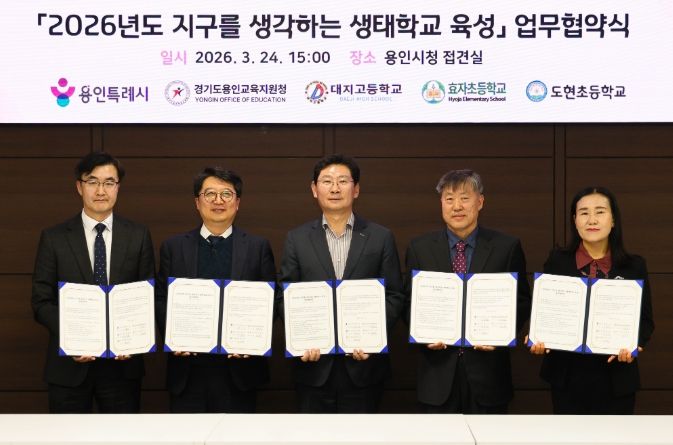 경기호연뉴스 민선기 기자 | 용인특례시는 24일 시청 접견실에서 용인교육지원청을 비롯해 3개 학교와 ‘지구를 생각하는 생태학교 육성사업’을 위한 협약을 맺었다.
