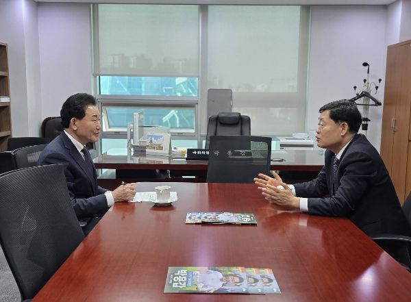 경기호연뉴스 민선기 기자 | 국회 국토교통위원회 소속 더불어민주당 박용갑 의원(대전 중구)이 3월 31일 정왕국 ㈜SR 대표이사를 만나 서대전역~수서역 KTX 신설을 요청했다.