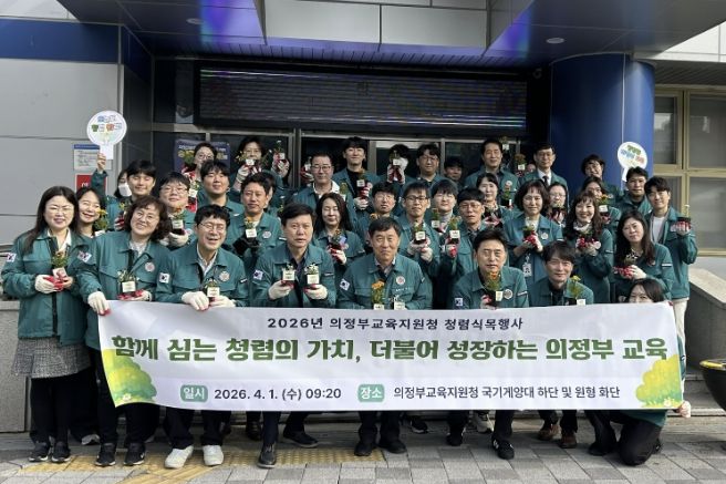 경기호연뉴스 민선기 기자 | 의정부교육지원청은 식목일을 맞이하여 교육공동체 내 청렴 문화를 확산하고, 청렴을 ‘심고 가꾸는 가치’로 내면화하기 위한 ‘2026 청렴 식목 행사’를 진행했다.