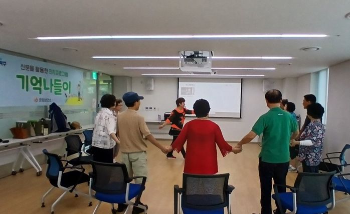 ‘기억나들이’는 9시 30분부터 10시 30분까지 진행되며, 운동 프로그램을 통해 신체 활동을 활성화하고 두뇌 자극을 유도한다.