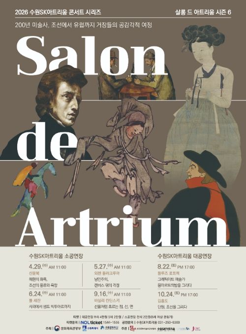4월 29일에는 수원SK아트리움의 대표공연인 ‘살롱 드 아트리움’이 여섯 번째 시즌으로 돌아온다. ‘살롱 드 아트리움’은 명화와 클래식 연주를 함께 보고 듣는 콘서트 시리즈다. 올해는 ‘200년 미술사, 조선에서 유럽까지의 거장들의 공감각적 여정’이라는 주제 아래 4월부터 10월까지 관객들을 맞이할 예정이다.