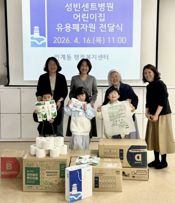 경기호연뉴스 민선기 기자 | 수원시 팔달구 인계동은 지난 16일 오전, 성빈센트병원 어린이집으로부터 아이들이 정성껏 모은 유용 생활 폐자원을 전달받았다고 밝혔다.