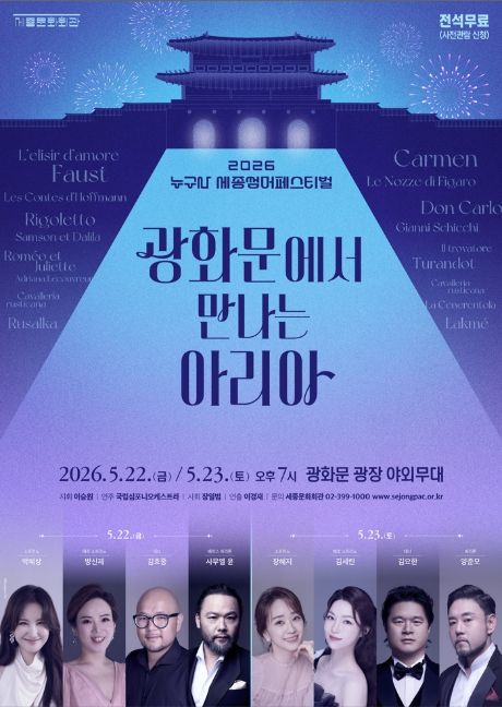 경기호연뉴스 민선기 기자 | 세종문화회관은 서울시민 누구나 즐길 수 있는 세종 썸머 페스티벌 '광화문에서 만나는 아리아'를 오는 5월 22일과 23일, 양일간 광화문 광장에서 개최한다. 광화문 광장은 시민 중심의 공간으로 새롭게 거듭난 이후 서울을 대표하는 문화 명소로 자리해 왔으며, 그 중심에서 세종문화회관은 한국 문화예술을 상징하는 공간으로 자리해 왔다. 이러한 공간적 맥락 속에서 세종문화회관과 광화문 광장은 문화의 전통성과 동시대성을 함께 품은 열린 문화예술 플랫폼으로 그 의미를 확장해가고 있다.