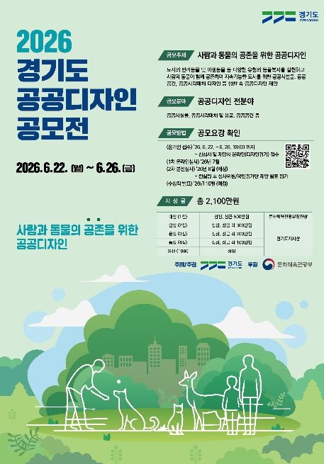 경기호연뉴스 민선기 기자 | 경기도가 ‘사람과 동물의 공존을 위한 공공디자인’이란 주제로 제20회 ‘2026년 경기도 공공디자인 공모전’을 6월 22일부터 26일까지 개최한다.