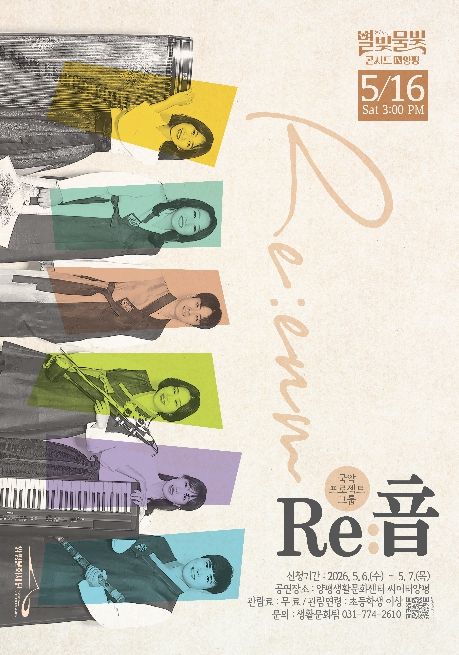 경기호연뉴스 민선기 기자 | 양평문화재단은 오는 5월 16일 오후 3시, 양평문화재단 2층 씨어터양평에서 ‘별빛물빛 콘서트 in 양평’ 5월 정기공연으로 국악 프로젝트 그룹 Re:音(리음)의 공연 ‘국악의 빛으로 물든 디즈니’를 선보인다.