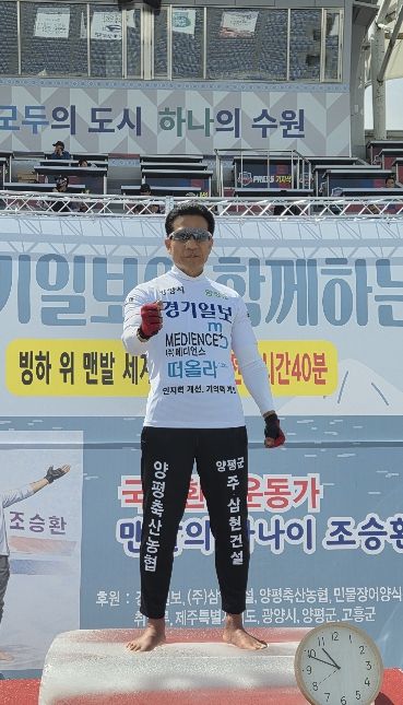 경기호연뉴스 민선기 기자 | 양평군은 지난 19일 경기도 수원종합운동장에서 양평군 홍보대사이자 국제 환경운동가로 활동 중인 ‘맨발의 사나이’ 조승환 씨가 인간의 한계를 넘어서는 기록을 세웠다고 밝혔다.