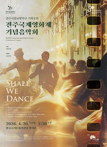 경기호연뉴스 민선기 기자 | 전주시립교향악단은 전주국제영화제를 기념해 오는 30일 오후 7시 30분, 한국소리문화의전당 연지홀에서 기획공연으로 전주국제영화제 기념 음악회인 ‘SHALL WE DANCE’를 선보인다.