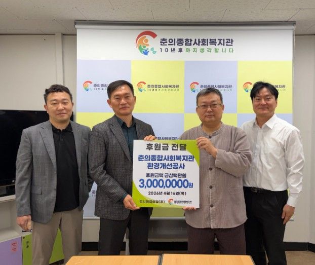 경기호연뉴스 민선기 기자 | 도시환경실업(주)는 지역사회 복지환경 개선과 나눔 문화 확산을 위해 춘의종합사회복지관에 환경개선공사 후원금 300만원을 전달했다. 이번 후원은 복지관 시설 환경을 개선해 지역 주민들이 보다 안전하고 쾌적한 환경에서 복지서비스를 이용할 수 있도록 지원하기 위해 마련됐다.