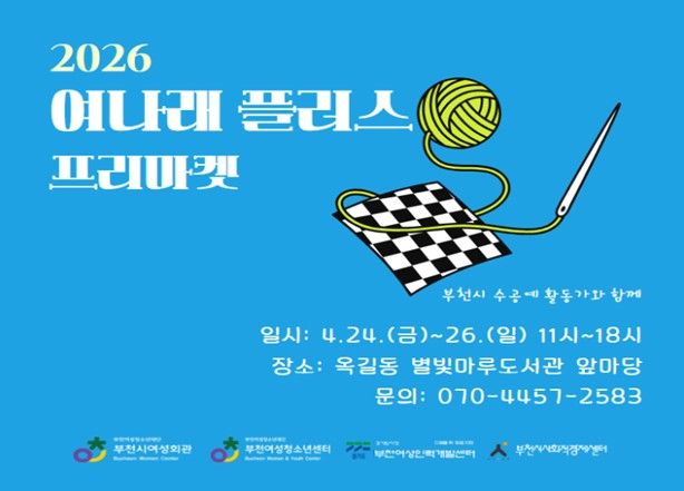 경기호연뉴스 민선기 기자 | 부천여성청소년재단이 운영하는 부천시여성회관과 부천여성청소년센터는 오는 4월 24일부터 26일까지 3일간, 옥길동 별빛마루도서관 앞마당에서 지역 여성 수공예 작가들의 작품을 판매하는‘여나래 플러스 프리마켓’을 개최한다.