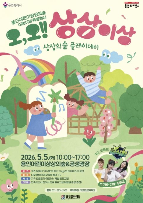 경기호연뉴스 민선기 기자 | 용인문화재단은 오는 5월 5일 어린이날을 맞아 용인어린이상상의숲에서 2026년 어린이날 특별행사 ‘오, 오! 상상이상’을 개최한다고 밝혔다.