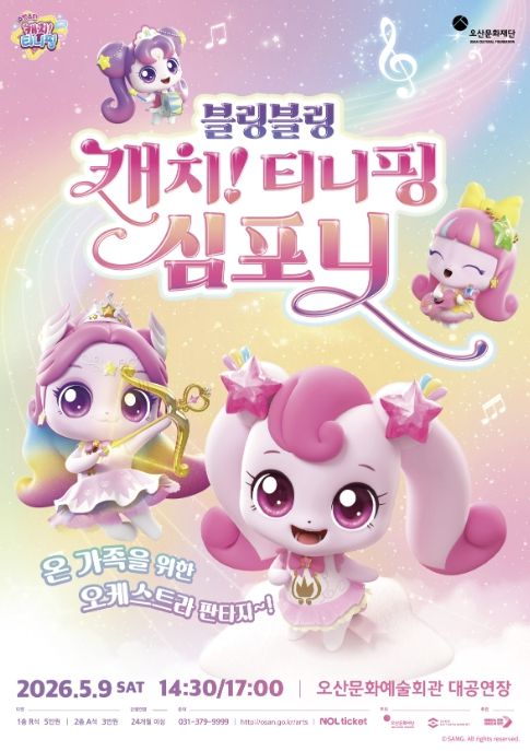 경기호연뉴스 민선기 기자 | 오산문화재단은 어린이날을 맞아 온 가족이 함께 즐길 수 있는 오케스트라 공연 ‘블링블링 캐치! 티니핑 심포니’를 선보인다고 밝혔다. 이번 공연은 인기 애니메이션 ‘캐치! 티니핑’ 시리즈의 OST를 오케스트라 라이브로 감상할 수 있는 무대로, 어린이뿐 아니라 가족 단위 관람객들에게 특별한 문화 경험을 제공할 예정이다.