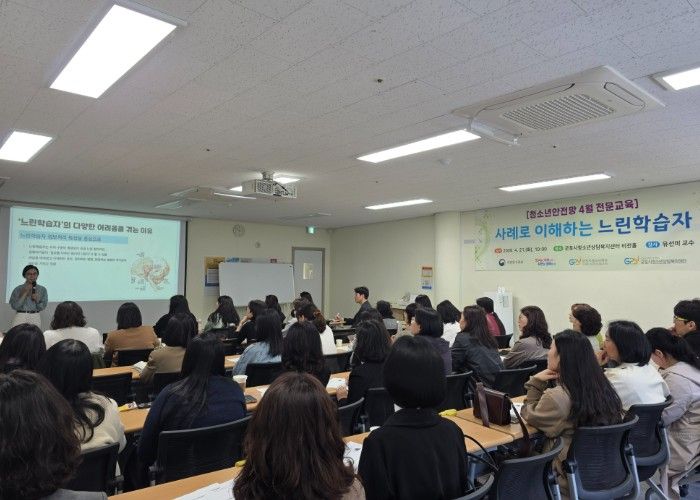 이날 강의는 느린학습자에 대한 이해를 높이고 현장에서의 효과적인 지원 방안을 모색하기 위해 ‘느린학습자의 이해와 개입 전략’을 주제로 명지대학교 아동학과 유선미 교수가 진행했다. 느린학습자는 지적장애에는 해당하지 않으나 평균보다 낮은 인지능력으로 인해 학습과 일상생활 적응에 어려움을 겪는 청소년이다.