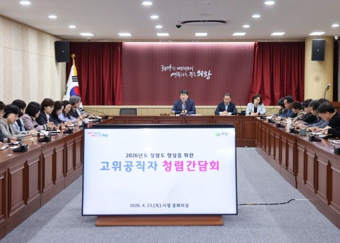 경기호연뉴스 민선기 기자 | 의왕시가 4월 23일 시청 중회의실에서 고위공직자를 대상으로 청렴간담회를 개최하고, 청렴도 향상을 위한 정책 추진 기반 마련에 나섰다.