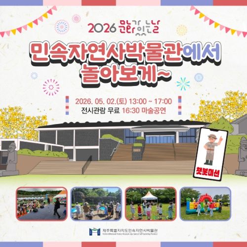 경기호연뉴스 민선기 기자 | 제주특별자치도 민속자연사박물관은 오는 5월 2일 오후 1시 박물관 야외 광장에서 2026년 ‘문화가 있는 날’ 첫 행사인 ‘민속자연사박물관에서 놀아보게~’를 개최한다.
