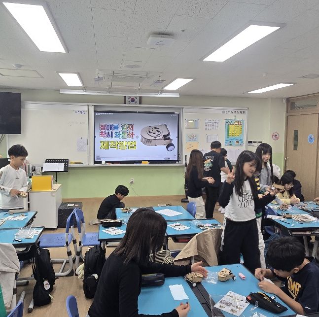 학생들은 저마다의 창작물에 집중하며 즐거운 시간을 보냈다. 직접 만든 자동차로 교실 바닥에서 경주를 펼치는 3학년 학생들의 얼굴에는 환한 미소가 번졌다. 5학년 교실에서는 ‘장애물 감시 착시 자동차’제작 방법을 진지하게 경청하며 자신만의 발명품을 완성해 나가는 열띤 분위기가 연출됐다.