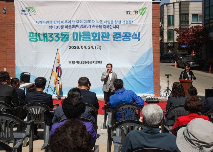 경기호연뉴스 민선기 기자 | 남양주시는 24일 평내동 588-19번지 일원에서 평내33통 마을회관 재건축사업 준공식을 개최했다고 밝혔다.