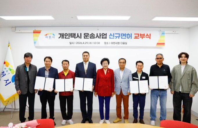 경기호연뉴스 민선기 기자 | 이천시는 29일 시청 다올실에서 개인택시운송사업 신규 면허증 교부식을 개최하고, 심사를 통해 최종 선정된 5명의 대상자에게 면허증을 전달했다고 밝혔다.