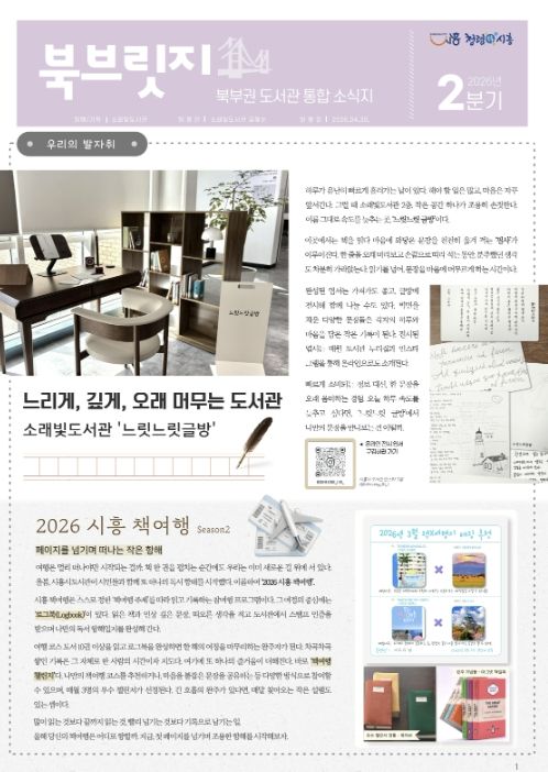 경기호연뉴스 민선기 기자 | 시흥시 소래빛도서관은 북부권 공공ㆍ작은도서관의 다양한 소식을 한눈에 전하는 분기별 소식지 ‘북브릿지(북부릿지)’ 2026년 2분기호를 발행했다.