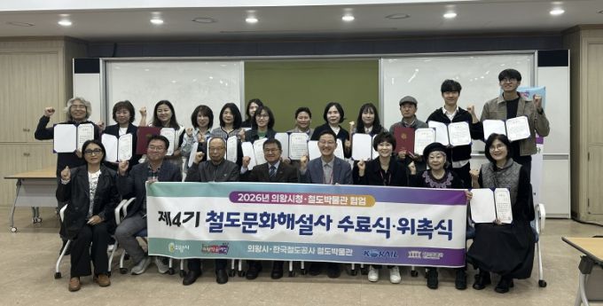 경기호연뉴스 민선기 기자 | 의왕시는 4월 28일 관내 부곡동에 위치한 코레일 인재개발원에서 ‘2026 의왕시민대학 철도문화해설사 심화과정’ 수료식을 개최했다.