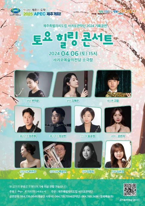 경기호연뉴스 김대엽 기자 | 서귀포시는 오는 4월 6일 15시 서귀포예술의전당 소극장에서 제주특별자치도립 서귀포관악단 주말 기획 공연 2024 토요힐링콘서트를 진행한다.
