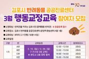 경기호연뉴스 민선기 기자 | 김포시는 반려동물 공공진료센터 연계 프로그램인 ‘반려견 행동교정교육’ 제1기 참여자를 모집한다고 밝혔다. 해당 교육은 반려견의 문제행동을 개선하고 이웃과 상생하는 건강한 반려문화를 조성하기 위해 지난해부터 운영해 온 프로그램이다. 시민들의 높은 관심과 호응에 힘입어 올해 보다 체계적이고 내실 있는 교육과 맞춤형 지도를 이어갈 예정이며, 교육은 연간 총6기, 12회(기수당 2회)로 나뉘어 운영될 계획이다. 1기 교육은 3월 15일, 3월 29일 총2회에 걸쳐 진행된다. 1회차는 실내교육으로 가정에서 나타나는 습관적 문제행동의 원인을 분석하고 맞춤 교정훈련을 실시하며, 2회차는 실외교육으로 1회차 훈련 행동 점검 및 산책 방법, 사회화 교육을 중심으로 운영할 계획이다. 특히 이번 교육은 '개는 훌륭하다', '동물농장' 등 다수 프로그램에서 반려견 행동 교정을 지도해 온 ‘권혁필 행동교정사’와 함께한다. 반려견의 습관적 행동의 원인을 면밀히 분석해 생활 습관은 물론 양육 환경까지 개선할 수 있도록 2:1 맞춤형으로 진행된다. 반려견의 행동 교정이 필요한 김포시민이라면 누구나
