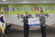 경기호연뉴스 민선기 기자 | 수원시 권선구 세류3동 방위협의회는 지난 12일, 세류3동행정복지센터를 방문해 불우이웃 돕기 후원금 50만 원을 기탁했다. 이번 후원금은 지역 내 취약계층 및 복지사각지대 가구 지원을 위해 사용될 예정이며, 세류3동행정복지센터는 대상자 발굴 및 맞춤형 복지서비스 연계 등을 통해 실질적인 도움이 될 수 있도록 집행할 계획이다. 방위협의회 회장은 “우리 주변에는 작은 도움에도 다시 힘을 낼 수 있는 이웃들이 있다”며 “이번 후원이 따뜻한 위로가 되길 바라며, 앞으로도 지역과 함께하는 나눔 활동을 꾸준히 이어가겠다”라고 말했다. 이진영 세류3동장은 “어려운 시기에 이웃을 먼저 생각해 주신 방위협의회에 깊이 감사드린다”며 “기탁해 주신 성금은 취약계층 지원을 위해 투명하고 세심하게 집행하겠다”라고 전했다. 한편 세류3동행정복지센터는 지역 내 복지자원과 연계한 지원체계를 바탕으로, 복지사각지대 해소를 위한 상담·발굴 활동을 지속 추진하고 있으며, 주민이 체감할 수 있는 촘촘한 복지안전망 구축에 힘쓰고 있다.