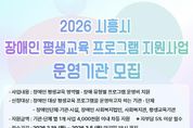 경기호연뉴스 민선기 기자 | 시흥시는 장애인의 학습권을 보장하고 사회참여 기회를 확대하기 위해 ‘2026년 장애인 평생교육 프로그램 지원사업’을 추진하는 가운데 운영기관을 모집한다. 이번 공모사업은 경기도와 시흥시가 공동으로 예산을 지원해 장애인의 역량 개발을 돕고, 지역사회와의 소통 기반을 마련하고자 추진된다. 공모 분야는 장애인 평생교육 7대 분류인 ▲기초문해 ▲학력 보완 ▲직업 능력 향상 ▲문화예술 ▲인문 교양 ▲시민참여 ▲성인 진로 등이며, 장애인 대상 영역별ㆍ유형별 프로그램 운영비를 지원한다. 지원 대상은 시흥시 관내 비영리민간단체로 등록된 장애인 단체ㆍ시설, 장애인 사회복지법인, 사회복지관 및 평생교육기관이다. 선정된 기관에는 1개 사업당 최대 400만 원 이내의 보조금이 지원되며, 보조금 신청액 대비 5% 이상의 자부담 편성이 필수다. 신청 기간은 2월 19일부터 3월 5일까지이며, 신청은 지방보조금관리시스템인 ‘보탬e’를 통해서 온라인 신청으로 진행된다. 사업은 4월부터 11월까지 진행된다. 김상동 평생교육원장은 “이번 공모를 통해 장애 유형과 특성을 고려한 수요자 중심의