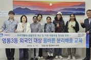 경기호연뉴스 민선기 기자 | 수원시 영통구 영통3동은 지난 17일, 외국인 주민의 생활환경 개선과 자원 재활용률 향상을 위해 관내 외국인을 대상으로 올바른 분리배출 교육을 실시했다. 이번 교육은 생활쓰레기 배출 방식에 익숙하지 않은 외국인 주민들의 불편을 해소하고 올바른 분리배출 문화 정착을 돕기 위해 마련됐다. 교육에서는 다국어 분리배출 안내문을 활용해 투명 페트병 분리배출 방법과 유용 생활폐자원 교환 제도 등을 안내했다. 김인태 영통3동장은 "이번 교육을 통해 외국인 주민들의 환경 의식을 높이고 생활쓰레기 감량과 재활용 활성화에 실질적인 도움이 될 것으로 기대한다”며 “앞으로도 외국인 주민을 포함한 모든 주민이 쉽게 이해하고 실천할 수 있는 환경교육을 지속적으로 추진하겠다”고 밝혔다. 한편, 영통3동 행정복지센터는 관내 수원출입국외국인청을 방문해 ‘찾아가는 외국인 분리배출 교육’을 실시할 계획이다.