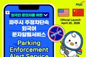 경기호연뉴스 민선기 기자 | 파주시는 4월 20일부터 외국인 운전자를 대상으로 한 ‘주정차 단속 외국어 문자 알림 서비스’를 시행한다. 이번 서비스는 주정차 금지 구역에 차량을 세운 운전자에게 실시간으로 단속 상황을 안내해 자발적인 차량 이동을 유도함으로써 과태료 부과를 사전에 방지하기 위한 기존 제도를 외국인까지 확대한 조치로, 최근 파주시 내 외국인 거주자와 운전자가 꾸준히 증가하는 추세를 적극 반영한 결과다. 2026년 3월 기준 외국인 정보 공동이용 시스템 자료에 따르면 파주시 등록 외국인은 19,841명으로 확인됐으며, 지난해 파주시에서 외국인 소유 차량의 주정차 위반 사례가 1,155명에 걸쳐 총 1,797건 발생한 것으로 집계됐다. 시는 이러한 현실을 고려할 때 외국인 운전자의 단속행정 이해를 돕고자 외국어 알림 서비스 도입이 필요하다는 판단이다. 시는 통계상 비중이 높고 범용성이 넓은 영어와 중국어 안내 서비스를 도입하기로 결정했다. 해당 서비스는 시행일 이후 차량 소유자의 주소지와 상관없이 파주시를 운행하는 모든 차량을 대상으로 온라인으로 신청할 수 있다. 또한 파주시청 누리집에서 한글 검색어뿐