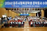 경기호연뉴스 민선기 기자 | 파주시는 (재)파주시행복장학회가 지난 18일 파주시 평생학습관 대공연장에서 학부모와 장학생 등 200여 명이 참석한 가운데 2026년 장학증서 수여식을 개최했다고 밝혔다. 이날 행사에서는 장학생과 학부모 등 200여 명이 참석해 학생들의 노력과 성취를 함께 축하하며 새로운 출발을 응원했다. 올해 행복장학회는 지역 사회의 다양한 수요를 반영해 ▲우수 ▲희망 ▲재능 ▲국가유공자 후손 ▲북한이탈주민 자녀 ▲다문화가정 자녀 ▲근로자 자녀 ▲지산학 등 총 8개 분야에서 192명의 장학생을 선발했다. 이들에게는 총 2억 5천여만 원 규모의 장학금이 지급되어 학생들의 학업과 꿈을 향한 도전에 힘을 보탤 예정이다. 김영숙 (재)행복장학회 이사장은 “장학사업은 단순한 경제적 지원을 넘어, 우리 지역의 미래를 준비하는 가장 소중한 투자”라며, “학생들이 스스로에 대한 믿음과 자긍심을 가지고 훌륭한 인재로 성장할 수 있도록 앞으로도 지속적인 지원을 아끼지 않겠다”라고 포부를 밝혔다. 행사에 참석한 파주시 관계자 역시 “오늘 이 자리는 학생들의 값진 땀방울을 지역사회가 함께 격려하는 뜻깊은