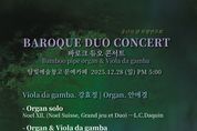 경기호연뉴스 민선기 기자 | 담양군문화재단은 오는 28일 오후 5시 담빛예술창고 문예카페에서 『2025 담빛예술창고 송년특별연주회 ‘바로크 듀오 콘서트’』를 진행한다고 밝혔다. 이번 공연은 2015년부터 꾸준히 진행해 왔던 담빛예술창고 대나무 파이프 오르간 정기연주회의 일환으로, 한 해를 마무리하는 의미에서 바로크 시대의 대표적 악기인 비올라 다 감바와 듀오 콘서트 형식을 빌어 서정성과 장엄함의 조화로움을 선사할 예정이다. 국내 유일의 대나무 파이프 오르간 연주는 담빛예술창고 정기연주회 상임연주자 안애경의 연주와 곡해설이 함께 곁들여지며, 일상에서 쉽게 접하기 어려운 악기인 비올라 다 감바 연주는 국내외에서 활발히 활동하며 한국을 대표하고 있는 강효정 연주자가 맡았다. 재단 관계자는, “단순한 음악 감상을 넘어, 바로크 시대 악기의 예술적 가치와 담양이 지닌 문화적 특성을 함께 체감하며 한 해를 편안하고 따스하게 마무리할 수 있기를 바라는 마음을 담아 준비한 공연이다.”고 말하며, “담양의 경관인 관방천과 관방제림의 풍치를 가득 느낄 수 있는 문화재생공간 담빛예술창고 문예카페에 방문하여 2025년 한 해를 되새