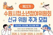 경기호연뉴스 민선기 기자 | 수원시청소년청년재단(이사장 최종진)은 수원시 청소년의 정책 참여 확대와 권익 증진을 위해 '제22기 수원시청소년참여위원회' 위원을 추가 모집한다고 밝혔다. 수원시청소년참여위원회는 청소년기본법5조의2(청소년자치권의 확대)에 따라 청소년이 직접 정책 제안과 의견 개진에 참여하며 청소년 정책의 실효성을 높이기 위해 운영되는 공식 참여기구이다. 이번 추가 모집은 수원시에 거주하는 9세부터 24세까지의 청소년을 대상으로 하며 총 20명 내외를 선발할 예정이다. 활동 기간은 2026년 3월부터 12월까지이며 주요 활동 내용은 △수원시 청소년 정책 제안‧발굴 및 자문 △정책 관련 전문교육 참여 △청소년축제 기획 및 운영 △경기도 청소년참여위원회 및 관내 참여기구 교류 활동 등이다. 참여위원회 위원에게는 수원시장 명의의 위촉장이 수여되며 활동에 따라 봉사시간도 부여된다. 모집 기간은 2026년 2월 13일부터 2월 24일까지이며 신청은 재단 홈페이지 또는 수원시청소년청년재단 경영지원실로 문의하면 된다.