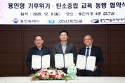 경기호연뉴스 민선기 기자 | 용인특례시는 8일 시청 접견실에서 강남대학교, 용인예술과학대학교와 ‘용인형 기후위기·탄소중립 교육 동행 협약’을 체결했다. 이날 협약식은 기후위기에 공동으로 대응하고, 지속가능한 지역사회 발전과 미래 세대 양성을 위해 마련됐다. 협약의 주요 내용은 ▲탄소중립‧기후 위기 대응 교육프로그램 공동 개발‧운영 ▲교육봉사‧멘토링 등 교원‧전문가‧학생 간 교류와 연계 활동 지원 ▲지역사회 대상 탄소중립 홍보‧캠페인‧체험 교육 공동 추진 ▲교육시설‧인프라 상호 활용 등이다. 협약에 따라 시와 두 대학은 탄소중립 사회 실현을 위한 교육 모델을 구축한다는 방침이다. 각 대학의 유아교육과 인력과 연계해 교육봉사 기회를 확대하고, 신규 프로그램을 공동 개발해 용인지역 학생들을 탄소중립 실천 의지를 가진 인재로 육성하고, 시민의 환경 감수성을 높이는 데도 이바지하겠다는 계획이다. 이에 따라 오는 12일 용인예술과학대 유아교육과 연극동아리가 기후변화체험교육센터에서 아동 30명을 대상으로 관련 연극을 진행한다. 이상일 시장은 “기후 위기는 글로벌 차원의 가장 중대한 문제
