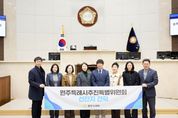 경기호연뉴스 민선기 기자 | 용인특례시의회는 30일 의장실에서 원주시의회 원주특례시추진특별위원회의 방문을 받고 특례시 추진 및 운영 사례를 공유하는 시간을 가졌다고 밝혔다. 이번 방문은 특례시 추진을 준비 중인 원주시의회가 용인특례시의회의 제도 운영 경험과 의회 조직·권한 구조를 벤치마킹하기 위해 마련됐다. 용인특례시의회에서는 유진선 의장을 비롯해 이윤미 의회운영위원장, 김희영·이진규·기주옥 의원이 참석했으며, 용인특례시 자치분권과 관계자들도 함께했다. 원주시의회 원주특례시추진특별위원회에서는 손준기 위원장과 최미옥·문정환 의원 등 관계자들이 참석했다. 이날 일정은 상호 소개를 시작으로 ▲특례시 운영 현황 및 제도적 기반에 대한 설명 ▲특례시 추진 과정과 의회 역할 공유 ▲의회 시설 견학 순으로 진행됐다. 특히, 참석자들은 ‘지방자치법’과 ‘지방자치분권 및 지역균형발전에 관한 특별법’ 등 특례시 관련 법령 체계, 인구 100만 이상 대도시의 행·재정 수요 증가에 따른 특례시 도입 배경과 필요성, ‘특례시의회 사무기구 구성과 정책지원 전문인력 운영 사례 등에 대해 심도 있는 의견을 나눴다.