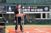 경기호연뉴스 민선기 기자 | 수원특례시의회는 10월 19일 황구지천야구장에서 열린 ‘제10회 수원컵 전국 사회인 야구대회 개회식’에 참석해 선수들을 격려했다. 이번 대회는 경기일보가 주최하고 수원시야구소프트볼협회가 주관했으며, 전국 사회인 44개 팀이 참가해 뜨거운 열정 속에 경기를 펼쳤다. 이날 행사에는 이재식 의장, 김정렬 부의장을 비롯한 오세철 예산결산특별위원장, 김동은 의원이 함께해 선수단을 응원하며, 전국 각지에서 모인 야구 동호인들과 교류의 시간을 가졌다. 이재식 의장은 축사에서 “직장과 가정을 오가며 바쁜 일상 속에서도 야구에 대한 열정으로 최선을 다하는 선수 여러분께 진심 어린 박수를 보낸다”며 “이번 대회가 지역과 세대를 넘어 우정을 나누는 축제가 되길 바란다.”고 말했다.