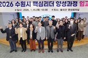 경기호연뉴스 민선기 기자 | 수원특례시는 15일 아주대학교 율곡관에서 ‘2026년 제12기 수원특례시 핵심리더 양성 과정 입교식’을 열었다. 입교식에는 이재준 수원특례시장, 최기주 아주대학교 총장, 권혁성 아주대학교 공공정책대학원장, 6급 공무원 교육생 35명 등이 참석했다. 수원특례시 핵심리더 양성 과정은 시정을 선도할 중간관리자급 핵심 인재 양성을 목표로 하는 장기 교육과정으로 12월 1일까지 11개월간 운영된다. 행정 환경 변화에 대응하는 핵심 역량을 중심으로 리더십, 직무 전문성, 정책연구 등 직급 맞춤형 교육을 한다. 실무와 미래 행정을 아우르는 역량을 강화하고, 교육 성과가 현장 행정으로 이어져 시민에게 더 가까이 다가가는 공직자로 성장하도록 지원한다. 최기주 아주대학교 총장은 “특례시에 걸맞은 공직자 교육 프로그램을 운영하겠다”며 “수원시와 긴밀하게 협력해 미래를 이끌 핵심리더를 양성하는 데 적극적으로 힘을 보태겠다”고 밝혔다. 이재준 수원시장은 35명 교육생 한 명 한 명을 호명하며 “이번 교육과정은 수원의 미래를 책임질 핵심 리더로 성장하는 출발점”이러며 “보고서 작성,