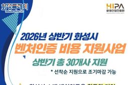 경기호연뉴스 민선기 기자 | 화성산업진흥원(원장 전병선)은 관내 벤처기업 경쟁력 강화를 위해 ‘2026년 상반기 화성시 벤처인증 비용 지원사업’ 참여기업을 오는 4월 24일까지 모집한다고 밝혔다. 이번 사업은 화성동탄테크노폴 벤처기업육성촉진지구 지정에 맞춰 관내 벤처기업 집적을 유도하고, 인증 비용 부담을 완화하기 위해 마련됐다. ‘2026년 상반기 화성시 벤처인증 비용 지원사업’은 벤처기업 인증을 신규 취득하거나 재취득한 기업에 대해 인증 수수료를 지원하는 사업이다. 상반기에는 약 30여개 사를 선정할 예정이며, 기업당 최대 45만 원까지 지원받을 수 있다. 기업 선정은 적격 심사를 통과한 기업을 대상으로 선착순 지원한다. 기업모집은 상반기 중 총 2회에 걸쳐 진행되며, 1차 모집 기간 내 모집이 완료될 경우 2차 모집은 진행하지 않는다. 전병선 화성산업진흥원장은 “이번 사업이 화성시 기업들이 벤처인증을 통해 기업의 경쟁력을 확보하는 마중물이 되길 기대한다”며, “관내 벤처기업들이 안정적으로 성장할 수 있도록 다각적인 지원을 통해 벤처 생태계를 구축하는 데 힘쓰겠다”고 전했다. 사업신