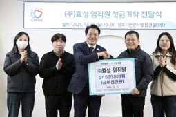 경기호연뉴스 민선기 기자 | 안양시는 ㈜효성으로부터 이웃돕기 성금 2천만원을 기탁받고 감사의 뜻을 전했다. 안양시는 15일 오전 10시 20분 시청 접견실에서 최대호 안양시장, 최영화 ㈜효성 안양공장 관리부장과 임직원 등이 참여한 가운데 기탁식을 개최했다고 16일 밝혔다. 이번 성금은 ㈜효성 안양공장, 기술원, 중공업연구소, HS효성종합기술원 등의 임직원들이 자발적으로 참여한 급여 나눔과 회사의 매칭 그랜트(matching grant) 적립을 통해 마련됐다. ㈜효성은 임직원과 회사가 함께하는 나눔 문화를 바탕으로 지역사회 이웃돕기 활동을 꾸준히 실천하고 있다. 최영화 ㈜효성 안양공장 관리부장은 “임직원들의 작은 정성이 도움이 필요한 이웃들에게 실질적인 힘이 되길 바란다”며 “지역사회와 함께하는 나눔 활동을 앞으로도 꾸준히 이어가겠다”고 말했다. 최대호 안양시장은 “어려운 경제 여건 속에서도 따뜻한 나눔을 실천해 주신 ㈜효성 임직원 여러분께 깊이 감사드리고 꼭 필요한 저소득가정을 위해 의미 있게 사용하겠다”고 밝혔다. 한편, 안양시는 이번에 전달받은 성금을 경기사회복지공동모금회를 통해 저소득가정 자녀