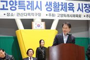 경기호연뉴스 민선기 기자 | 이동환 고양특례시장이 지난 29일 고양체육관에서 열린 ‘2025년 경기도지사기 줄넘기대회’에서 축사를 하고 참가 선수들의 활약을 응원했다. 이날 1,500여 명이 참가해 30초 번갈아 뛰기, 3분 뛰기, 프리스타일, 단체전 등 부문에서 실력을 겨뤘다.