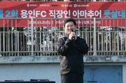 경기호연뉴스 민선기 기자 | 이상일 용인특례시장은 21일 축구도시 용인서 열린 직장인 풋살대회와 용인시박물관 기획전 개막식, FK2 풋살리그 경기장을 잇달아 찾았다. 이날 오전 기흥레스피아에서는 ‘2026 용인FC와 함께하는 직장인 풋살대회’가 열려 지역 내 직장인 12개 팀, 약 200명이 참가해 열띤 경기를 펼쳤다. 대회 현장을 찾아 참가팀을 응원한 이상일 시장은 이어 용인시박물관에서 열린 2026년 기획전 ‘함께 킥오프, 우리들의 축구도시 용인’ 개막식에도 참석했다. 이번 전시는 시민구단 용인FC 창단을 기념해 한국 축구의 태동기와 용인축구센터를 거쳐 용인FC로 이어지는 지역 축구 발전사를 조명하기 위해 마련됐다. 용인축구센터와 용인FC, 서포터즈 문화를 함께 소개하며 ‘시민구단의 주체는 시민’이라는 의미를 담아 축구를 통해 형성된 지역 공동체의 가치를 전달하는 데 초점을 맞췄다. 개막식에는 이상일 시장과 용인FC 선수단, 서포터즈, 시민 등 150여 명이 참석했다. 이 시장과 용인FC 선수단은 전시장을 찾은 시민들과 함께 전시를 관람하며 가족 단위 관람객과 자연스럽게