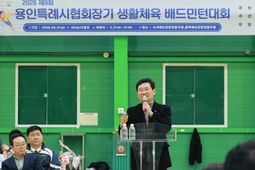 경기호연뉴스 민선기 기자 | 이상일 용인특례시장은 21일 이틀간 수지·동백 배드민턴전용구장에서 열리는 ‘2026년 제9회 용인특례시 협회장기 생활체육 배드민턴대회’에 참석해 대회 참가자들을 격려했다. 이날 수지배드민턴전용구장에서 열린 개회식에는 이상일 시장을 비롯해 체육회·협회 관계자와 지역 배드민턴 동호인 500여 명이 참석했다. 이상일 시장은 “제9회 용인특례시 협회장기 생활체육 배드민턴대회 개최를 축하한다”며 “배드민턴은 용인에서도 많은 시민의 사랑을 받으며 지역사회에 활력을 불어넣고 있다”고 말했다. 이 시장은 “배드민턴 전용구장에 대한 동호인들의 바람을 시가 잘 알고 있고, 시도 그와 관련한 일을 진행하고 있다”며 “시민들이 보다 편안하게 생활체육을 즐길 수 있도록 시가 체육시설 확충과 환경 개선에 지속적으로 힘쓰고 있다”고 했다. 시는 생활체육 인프라 확충을 위해 은화삼지구 체육관 조성사업을 추진 중이며, 해당 시설은 탁구장 26면, 배드민턴장 8면, 주차장 56면 규모로 조성될 예정이다. 탁구장은 배드민턴을 칠 수 있을 정도의 높이로 지어지며, 배드민턴 대회 때는 탁구장도
