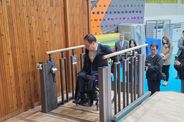 경기호연뉴스 민선기 기자 | 경기도의회 보건복지위원회 박재용 의원(더불어민주당, 비례)은 9일, 수원시 소재 파장초등학교와 영일중학교에서 학교 무대 접근성 개선시설 체험활동을 진행했다. 이번 활동은 그동안 이어져 온 체험형 접근성 점검(2023년 저상버스 체험, 2024년 시각장애 체험)의 일환으로 올해는 교육 현장의 환경을 살펴보고 개선방향을 모색하기 위해 추진됐다. 박재용 의원은 “이번 행사는 학교 체육관 및 강당 무대 등 계단 중심 구조로 인해 장애인의 접근이 제한되는 현실을 직접 체험하고, 교육현장의 접근성 개선 필요성에 대한 공감대를 형성하기 위해 마련됐다”고 밝혔다. 이번 체험활동에는 경기도교육청 학교안전과, 경기도장애인편의증진기술지원센터, 학교 관계자 등이 참석한 가운데 무대에 설치된 계단겸용 휠체어 리프트를 직접 조작하며 이용 과정과 특성을 살펴보고 개선 방향을 논의했다. 박재용 의원은 “현재 많은 학교에서 계단 이용이 어려운 학생들이 무대에 오르기 위해 별도의 우회 동선을 이용해야 하는 등 교육활동에 동등하게 참여하기 어려운 구조가 존재한다”며 “무대 경사로 설치 등 접근성 확보는
