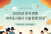 경기호연뉴스 민선기 기자 | 여주도시공사는 2025년 추석 명절을 맞아 고향을 찾는 귀성객과 시민들의 편의를 위해 주요 시설 운영시간 조정, 무료개방 등 특별 서비스를 제공한다고 2일 밝혔다. 공사는 우선, 추모객이 집중되는 여주추모공원의 추석기간(5일~7일) 운영 시간을 기존 오전 9시~오후 6시에서 오전 7시~오후 6시로 2시간 조기개장하여 확대운영한다. 이를 통해 명절연휴 기간 원활한 참배가 가능하도록 편의를 도울 예정이다. 또한, 시민과 방문객들의 주차 편의를 위해 공영주차장을 연휴기간(3일~9일) 전면 무료 개방한다. 이를 통해 귀성객과 지역 상권을 찾는 이용객들이 보다 편리하게 주차할 수 있을 것으로 기대된다. 교통약자 이동지원센터의 경우, 특별교통수단은 추석기간(5일~7일) 무료 운행하며, 바우처 택시는 정상 요금으로 운영된다. 공사는 교통약자의 이동권 보장을 위해 차량 안전 점검을 마치고 원활한 운행 서비스를 제공할 계획이다. 종합운동장 등 체육시설과 오학, 점동 파크골프장은 추석기간(5일~7일)에만 휴무이고 그 외 휴일은 정상운영하며, 이 중 파크골프장은 대체공휴일(8일)과 한글날에