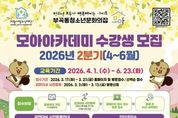 경기호연뉴스 민선기 기자 | (재)의왕시청소년재단 부곡동청소년문화의집이 청소년들의 창의성과 실천 역량을 키우는 배움의 장을 조성하기 위해‘2026년 모아아카데미 2분기(4~6월)’ 수강생을 모집한다. 이번 과정은 ▲창의 ▲미디어 ▲문화창작 3개 분야로 구성되어 있으며, 브레인큐브 ·보드게임·웹툰·ITQ 자격증 등 청소년들의 관심을 사로잡을 다양한 프로그램으로 구성됐다. 총 8개 프로그램 13개반이 이번 강좌로 개설되며, 부곡동청소년문화의집은 청소년들이 자신의 흥미와 진로 방향에 맞춰 주도적으로 학습을 선택하고 경험할 수 있도록 프로그램을 체계적으로 구성했다. 아울러, 강좌 특성에 맞춘 맞춤형 운영을 통해 참여 중심의 수업 환경을 마련하고, 청소년들이 스스로 배우고 성장하는 과정을 경험할 수 있도록 했다. 강좌의 신청은 3월 17일부터 3월 27일까지 온라인(홈페이지)로 하거나 방문으로 가능하다. 아울러, 수강료 감면 혜택을 희망하는 청소년은 사전등록이 필요하다. 하반기 감면 사전 등록 기간은 3월 13일까지이며, 최근 3개월 이내 발급된 관련 증빙 서류를 지참해 부곡동청소년문화의집으로