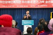 경기호연뉴스 민선기 기자 | 용인특례시는 12일 용인시처인장애인복지관이 한해 동안 나눔을 실천한 후원자와 자원봉사자를 위한 ‘우리동네 온기가득 송년회’를 열었다고 밝혔다. 이 행사에 참석한 이상일 용인특례시장은 장애인복지를 위해 헌신한 후원자와 자원봉사자, 복지관 관계자들을 격려하고, 감사의 마음을 나눴다. 이상일 시장은 “처인장애인복지관은 장애인 복지 수준 향상을 위해 훌륭한 활동을 해왔다”며 “이 자리에 계신 후원자와 자원봉사자 여러분의 헌신적인 노력은 장애와 비장애의 벽을 허물고, 장애인에게 희망을 전달했다”고 말했다. 이 시장은 “용인특례시는 장애인 복지 활동과 정책을 선도적으로 운영하고 있고, 장애인을 위한 시설개선에도 적극 노력하고 있다”며 “장애인복지관에 많은 후원이 모이고 있고, 이 마음이 용인특례시를 따뜻한 공동체 사회로 만들고 있다”고 했다. 이날 행사에는 이상일 시장을 비롯해 지역 주요 내빈, 후원자, 자원봉사자, 복지관 이용자 등 200여 명이 참석했다. 행사는 식전 공연을 시작으로 송년회 영상 시청, 송년사 및 축사, 유공자 표창, 응원 메시지 퍼포먼스 순으로 진