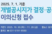 경기호연뉴스 민선기 기자 | 수원시 영통구는 2025년 7월 1일 기준 개별공시지가를 10월 30일 결정·공시하고, 11월 28일까지 이의신청 기간을 운영한다. 이번에 결정·공시되는 대상은 올해 1월 1일부터 6월 30일까지의 토지 분할, 합병, 지목변경 등 변동 사항이 있는 58필지이다. 결정·공시되는 개별공시지가는 토지소재지 구청 토지관리과 및 인터넷 부동산공시가격알리미에서 확인할 수 있으며, 개별공시지가에 이의가 있는 토지소유자나 이해관계인은 이의신청서를 토지소재지 구청 토지관리과에 방문 또는 우편 제출하거나 인터넷을 통하여 신청할 수 있다. 이의신청 토지는 감정평가사의 검증을 거쳐 부동산가격공시위원회의 심의 후 이의신청인에게 처리결과를 통지하고 조정된 개별공시지가는 12월 22일 공시될 예정이다.